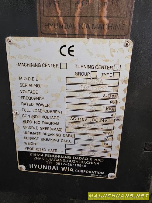 产品名称:威亚L210A数控车床,8寸卡盘,带对刀仪,12工位刀塔,.